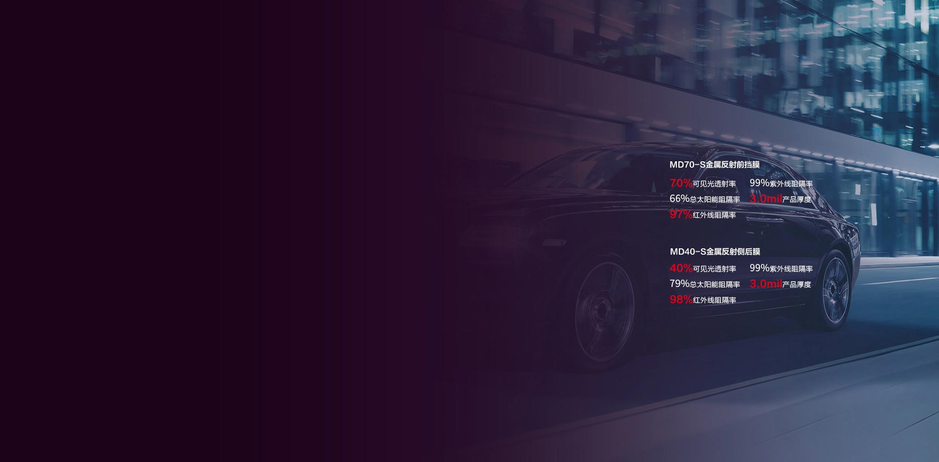 安全與隔熱共享,美化車輛外觀,同時(shí)讓玻璃的顏色和愛(ài)車的顏色相得益彰,更時(shí)尚、更高端。99%以上阻隔紫外線,保護(hù)肌膚健康與美麗。盡享尊貴盡享快樂(lè)。